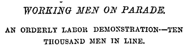 The parade of the working men yesterday, although not so large as its organizers had predicted, was conducted in an orderly and pleasant manner. Those who rode or marched in the procession were cheerful, and evidently highly gratified with the display. Nearly all were well-clothed, and some wore attire of fashionable cut. The great majority smoked cigars, and all seemed bent upon having a good time at the picnic grounds. The originators of the labor demonstration, as the parade was spoken of, frankly admitted that the working men were determined to show their numerical strength in order to satisfy the politicians of this City that they must not be trifled with.