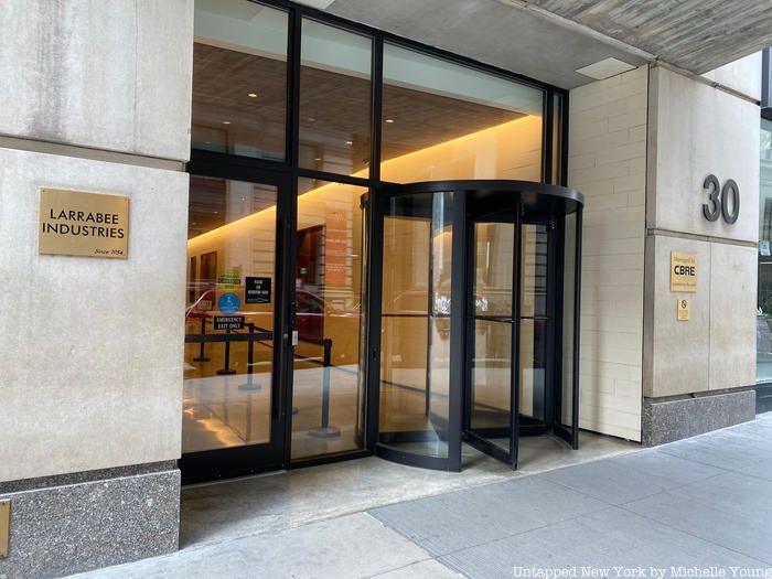 LARABEE INDUSTRIES Since 1954, reads a brass plaque on the outside of 30 Broad Street, just down the street from the New York Stock Exchange. Most passerby would probably assume it denotes a real company inside the office building. But it’s actually a nod to the 1954 Audrey Hepburn film, Sabrina, which also stars Humphrey Bogart and William Holden as the Larabee brothers competing for Hepburn. The developers, Tribeca Associates, likely added the plaque in the renovation of the building in 2016.