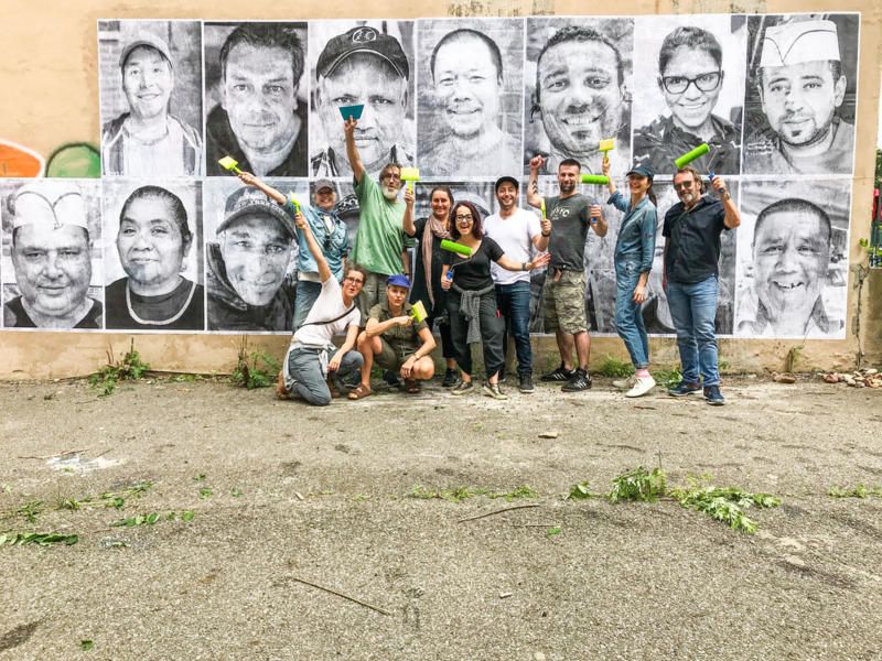 Back in February, we snuck inside an unassuming garage in the East Village to get a look at where food carts go to sleep at night. That gave us a glimpse into the world of street vendors, but it’s only part of the complete story. If you’ve wondered about the people who prep, serve and graciously quell our hunger pangs, make sure to keep an eye out for an upcoming “JR Photography happening,” entitled Feeding NYC. World-renowned French street photographer JR is known for his large-scale installations of black and white photographs in public places. This includes work from his INSIDE OUT series, and his hauntingly beautiful images inside the decrepit walls of the abandoned Ellis Island hospital, which we recently launched a tour about.