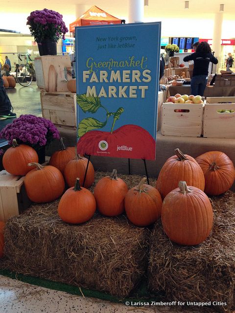 A farmers market in an airport terminal might sound strange, but not when you’re JetBlue, and not when it’s October 31st. If you’re lucky enough to be traveling on Halloween, and you’re flying out of John F. Kennedy International Airport on JetBlue Airlines, then be sure to leave yourself with a little extra time at the airport so you can enjoy the first ever pop up farmers market––IN a terminal! The market, located well beyond security, is geared to boarding pass holders alone, and today is the final day.