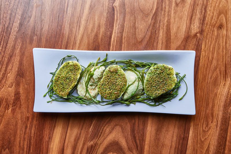 The menu offers first courses and main courses from the mer and the terre. Boasting dishes like roasted lamb chops, slow-baked ora king salmon, and buckwheat crusted sea scallops, the menu leaves customers with options that traverse flavors from pickled turmeric to smoked paprika. Conversely, the dessert menu offers dishes with strawberries, passionfruit, cherries, and chocolate. Customers can choose from four types of cheeses, including comté and coupole, Vermont goat cheese, for a traditional French dessert.