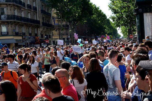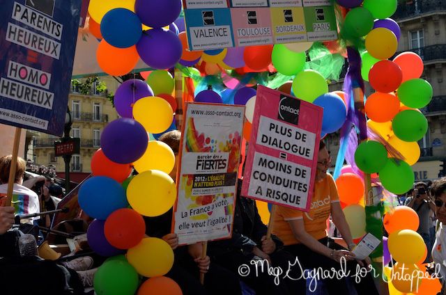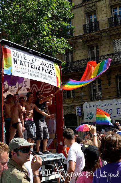 This Saturday, June 30, was Paris’ Gay Pride Parade: starting at Montparnasse, finishing at Bastille. Every year, Parisian citizens of all walks of life come together and show their pride. Thousands of people lined up along the streets of the 14th, 6th and 5th districts to watch marchers and floats of dancing, go-go boys, associations and political parties show off their pride, desire, support and goals for equality.