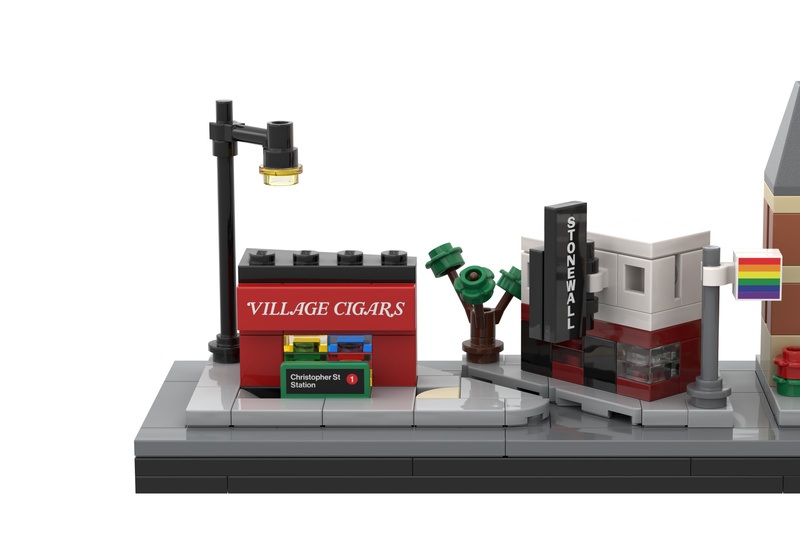 The Greenwich Village Building Set is made of 449 authentic LEGO® bricks. Those bricks allow you to loosely recreate the streetscape that stretches from Seventh Avenue South to University Place. Well-known sites like Village Cigars and the Hess Triangle, New York City’s smallest plot of land, are included in the set. A rainbow pride flag stands outside the tiny Stonewall Inn, a landmark known as the birthplace of the modern gay rights movement. Multi-colored and arched-shaped LEGO® bricks mimic the dramatic Gothic elements on the facade of the Jefferson Market Library and colorful flower-shaped bricks surround the carriage houses of MacDougal Alley, Washington Square Park, the Washington Arch, and the Greek Revival rowhouses of Washington Square North.