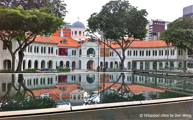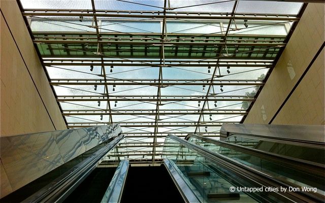 The transparent roof of the Bras Basah station houses a reflecting pool (its water-centric design being an apt historical reference to ‘Bras Basah’, Singapore’s main drying site for wet rice in the 1800s, ‘beras basah’ in Malay). The water-filled skylight allows natural light into the station that links the metro network with the Singapore Art Museum and Singapore Management University.