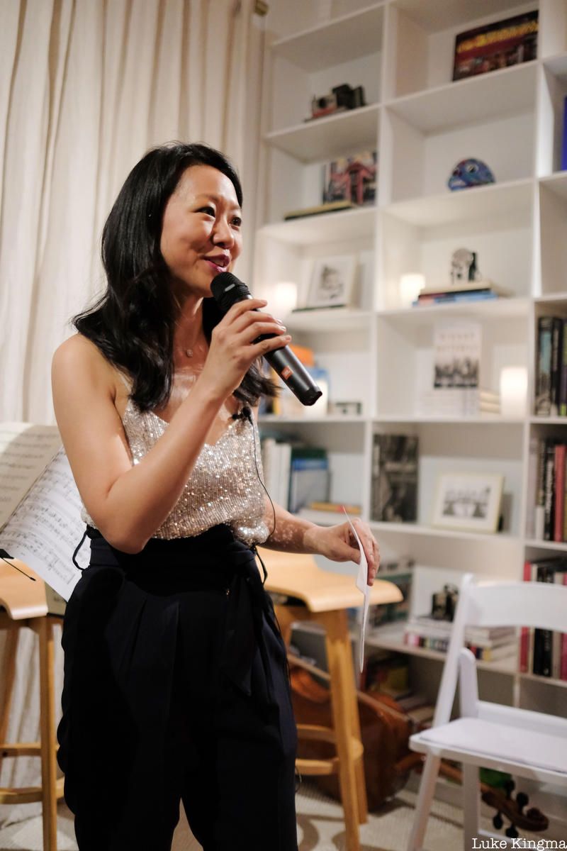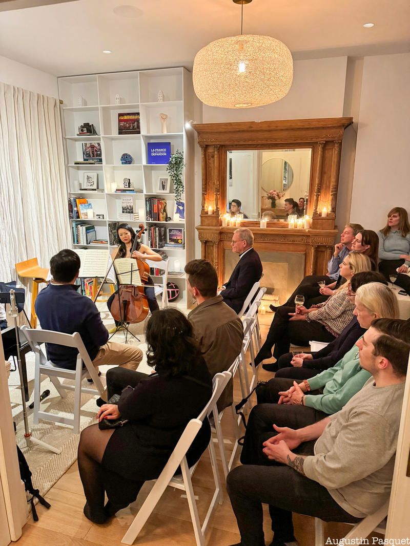 The ambiance, the cocktails, and the music were all inspired by the Roaring 20s and 1930s Jazz Age New York City—the time period of The Bishop and the Butterfly, a true crime page-turner. The Brownstone Trio, consisting of Michelle Young, Benedict Wong, and Steven Wu performed the first movement of Gabriel Fauré’s Piano Trio in D minor, with Michelle explaining to the audience how classical music was mirroring the avant-garde movement in art and architecture at the time.