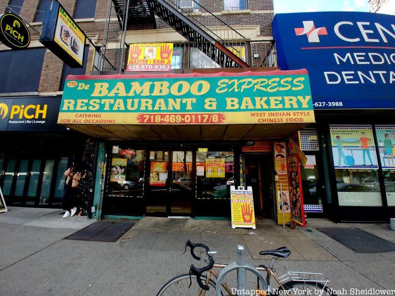 The menu includes Guyanese and Trinidadian favorites including bake and saltfish, a fried bread stuffed with saltfish, scotch bonnet, onions, and tomato. Pepperpot, the national dish of Guyana, is a meat-based stew prepared with cinnamon, clove, hot peppers, and cassareep, a thick black liquid made from cassava root. Other popular items include souse, a cold dish of pickled pig meat, pholourie, dhal puri, and Indo-Chinese dishes like chow mein.