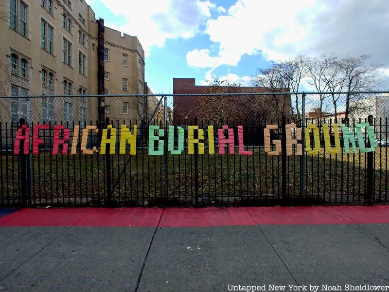 The Flatbush African Burial Ground at 2286 Church Avenue is what remains of a burial ground established likely in the early 1700s by the Dutch Reformed Church. In Dutch Flatbush, about one in three people were enslaved, and their labor was used for to clear land for roads, churches, and farms. This burial ground appeared on an 1855 map by politician Teunis Bergen to the northeast of Erasmus Hall High School. A Coalition of residents, activists, and local organizations, which includes a number of Caribbean figures from the neighborhood, has fought to stop development on the property and reclaim any ancestral remains from the site.