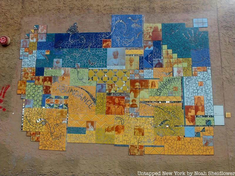 Throughout Little Caribbean, murals line the walls of buildings and subway platforms, showcasing the artistry and culture of the neighborhood. At the Church Avenue station that services the 2 and 5 subway, artist Louis Delsarte installed his Transitions in 2001. The stained glass and glass mosaic murals depict cultural scenes from the neighborhood, such as women celebrating the West Indian American Day Parade. In one scene, a young girl picks oranges from a fruit stand with her mother, while in another, churchgoers walk alongside costumed men. Delsarte was born and raised in Brooklyn and also created a mural called The Spirit of Harlem depicting figures from the Harlem Renaissance.