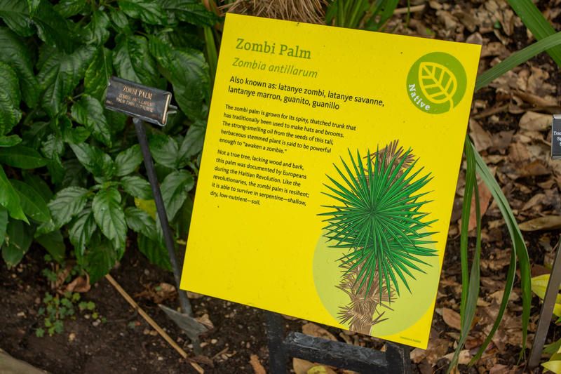 Signage for the Trees of Little Caribbean exhibit. Photo by Michael Stewart