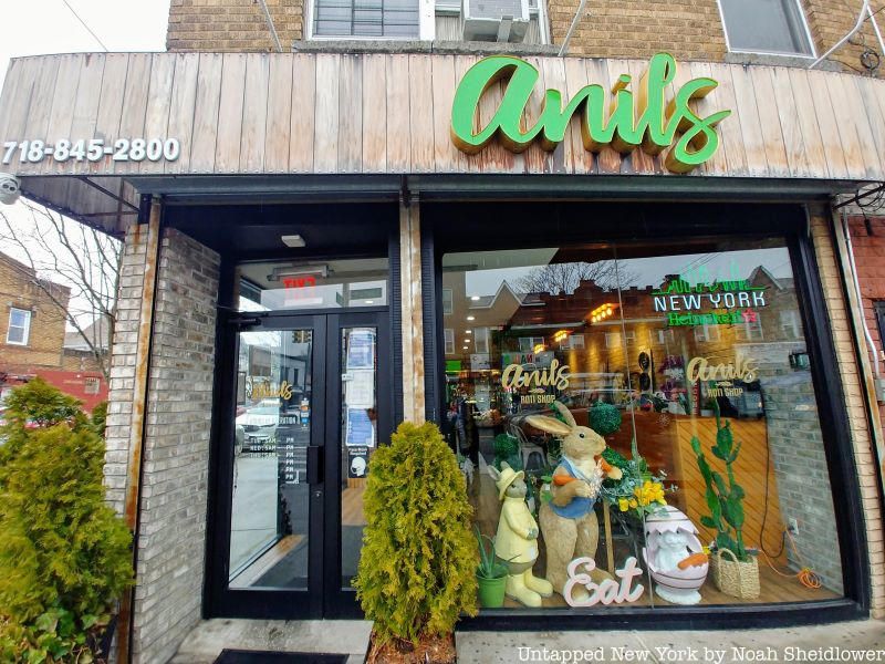Further east, many shops boast vibrant colors, including Anjees Bridal. Shops like Spice World and Singh Farm offer hard-to-find West Indian foods, while the other location of Little Guyana Bake Shop offers tennis rolls (sweet bread rolls typically eaten for breakfast) and black eye cakes (sweet pastries made with black eyed peas). At 125th St. is Anil’s Roti Shop, a rather modern small West Indian restaurant, located by a number of medical offices and furniture stores.