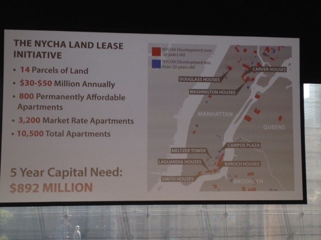 3200 Market rate and 800 permanently affordable apartments could be built just on NYCHA’s spare land. It would be privately funded. NYCHA’s developments were built as towers in the park which they now see as a problem. To solve it: “We looked for only sites located on the perimeter. 11/14 sites are parking lots.” They seek to bring back the feeling of the grid to NYCHA neighborhoods.