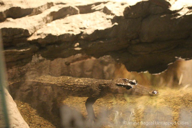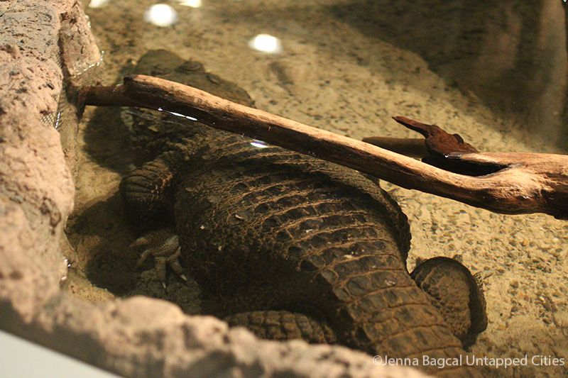 Hazel Davies, the manager of living exhibits at the museum, says that this exhibit is in collaboration with Clyde Peeling’s Reptiland in Allenwood, Pennsylvania, which loaned all the crocodiles to the museum. Mark Norell, the Chair and Macaulay Curated in the Division of Paleontology, the curator of Crocs (and the recent “Dinosaurs Among Us” says that crocodiles are the closest living relatives to birds.