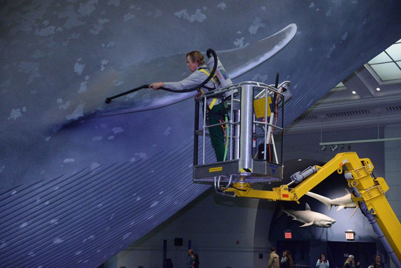 The entire cleaning process currently take about two to three days, but that wasn’t the case just a few years ago; Museum staff members now utilize a lift for the procedure, whereas scaffolding had to be erected around the whole model in a previous scrub-down process that generally took about a week.