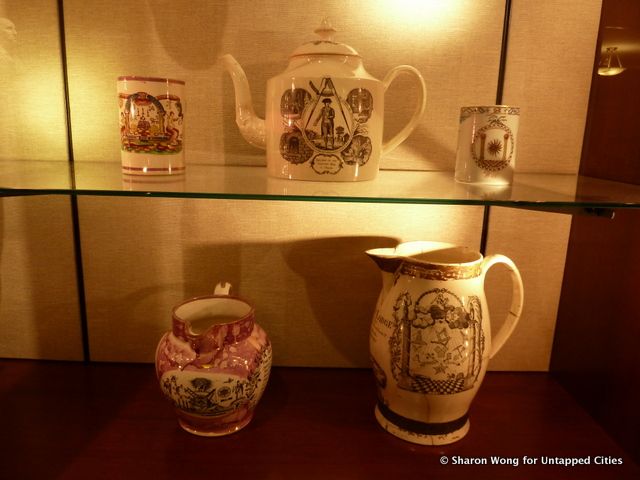 The Livingston Masonic Library also showcases several decorative china pitchers from the late 1700s, all presumably used during Masonic banquets.