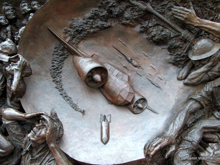 These bas-reliefs can be found on the Battle of Britain Monument located on the Victoria Embankment