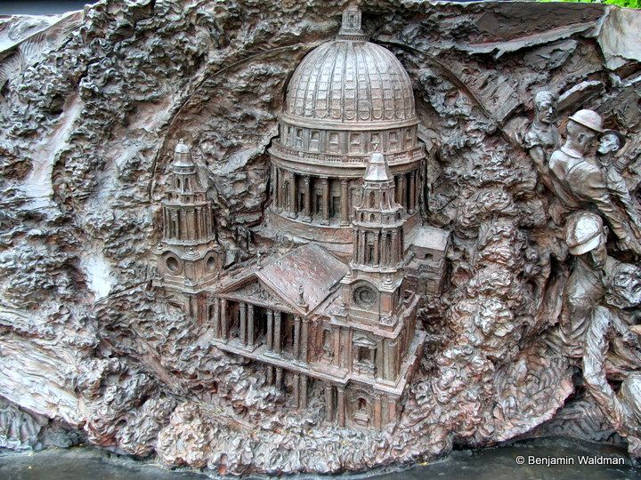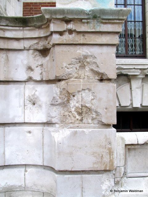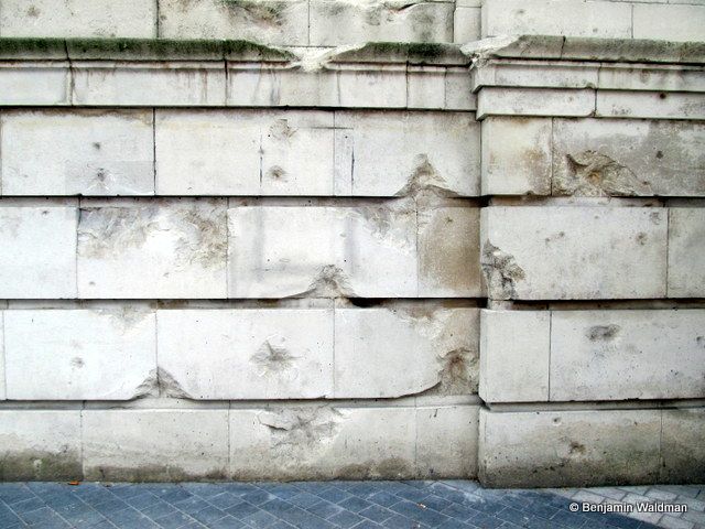 Walking around London one finds many reminders of the Blitz. As can be seen in the following photographs, some of the damage was left as a reminder of what occurred during the War. These pockmarked buildings and monuments tell a tale akin to New York City’s own pockmarked Morgan Bank Building at 23 Wall Street.