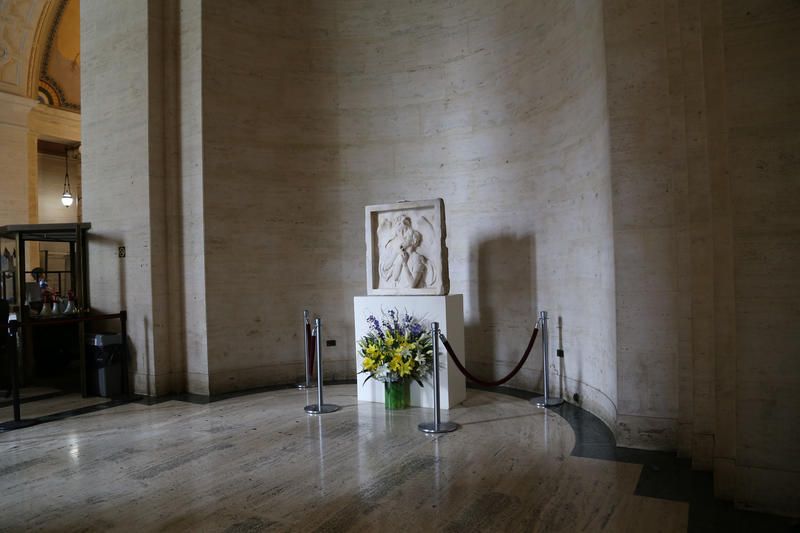 After Foster passed away in 1902 in a fire in the Park Avenue Hotel, a 700-pound marble memorial in her honor was partially funded by Teddy Roosevelt and designed by Karl Bitter. Upon completion in 1904, The Tombs Angel monument as it was called, was installed in the old Criminal Courts Building. When the court was demolished in 1940, the monument was lost in storage. In 1983, it was rediscovered, grimy with dirt and missing its original brass frame, during an art survey, and sent to The Metropolitan Museum of Art. The city was unable to manifest a plan for the artwork, and it was put back in storage. It was not until Chief Clerk and Executive Officer of the Civil Branch of the Court John F. Werner located a relative of Foster’s who had previously expressed an interest in recovering the monument, that the restoration process was kickstarted.