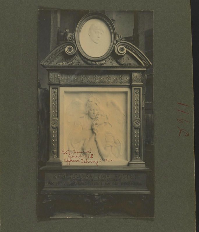 Now, the Municipal Art Society has restored it under the generous funding of the Paul and Klara Porzelt Foundation so it can be displayed once again in a public space. A $44,000 restoration was carried out by A. Ottavino Corp. The artwork depicts an angel standing over a man, a reference to Foster’s nickname. The monument stands today in the Manhattan County Courthouse to represent Rebecca Salome Foster’s lasting impact on criminal justice.