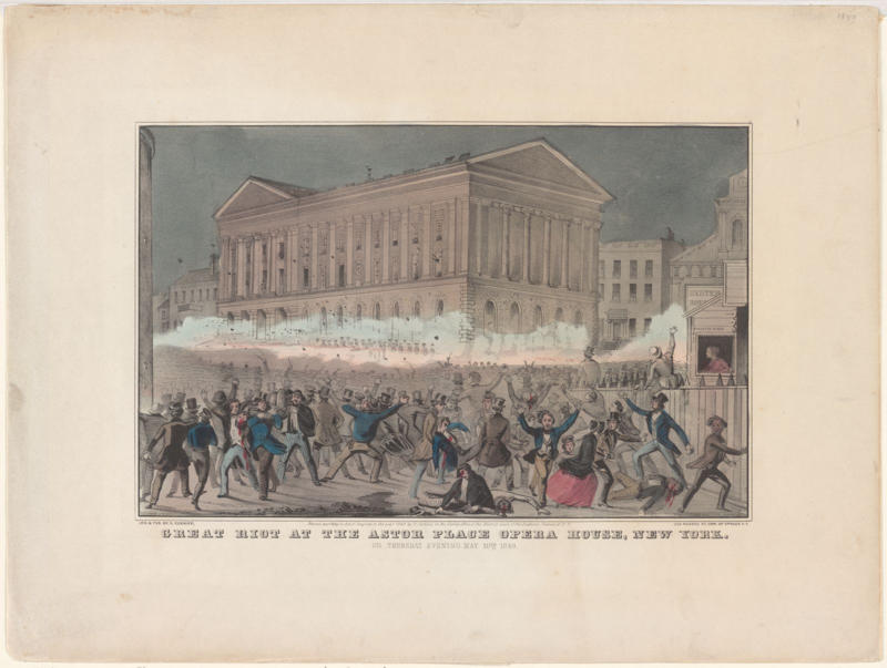 At a time of high tension between the haves and have-nots in America, two theater actors are booked on the same night to play Shakespeare’s Macbeth: American actor Edwin Forrest and English actor William Macready. Working-class New Yorkers were encouraged to come and protest at the Astor Place Opera House a few days after the doubleheader. 10,000 people filled the streets around the opera house, none of whom were ready to protest peacefully. With the rallying cry of “Down with the codfish aristocracy!”, they brought rocks and bottles to use as projectiles at audience members and anybody trying to stop them.