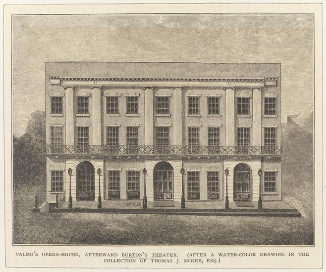 The Italian Opera House and Palmo’s Opera House (below) were the two first purpose-built opera houses, meaning, designed and used specifically for opera. Prior to that, there were other venues used for opera, which included Castle Clinton and Niblo’s Garden. These early opera houses, though interesting historically, were not successful, mainly because they failed to cater to the right crowds.