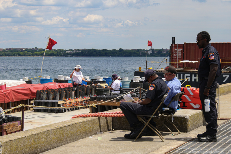 On Monday morning, 60 licensed pyrotechnicians from around the country gathered along the shores of New York Harbor to rig a series of barges with explosives. More than 80,000 shells carefully arranged by the crew this week will detonate in a few days for the nation’s largest fireworks display, Macy’s 4th of July Fireworks®.