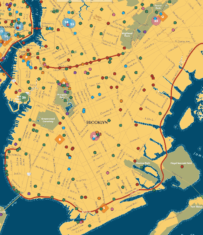 Red Hook Park is one of Brooklynâs most significant New Deal projects. It was one of seven major parks created by the Parks Department with New Deal aidâand its enormous swimming pool was one of 11 pools built by the WPA. Brooklyn is also home to many other New Deal projects, including the Williamsburg Childâs Health Clinic, which was one of eight clinics built with PWA funds as part of a NYC initiative to improve health in poor neighborhoods, and Brooklyn College, built in 1935-37, also with PWA funds. And of course, donât forget about the New Deal mural at the Brooklyn Museum!