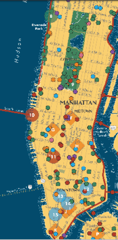 As the map shows, Manhattan is packed with New Deal projects. You might be surprised to learn that the Central Park  Zoo was built in 1934 by CWA workersâand is the most significant of thirty New Deal projects in Central Park, including the Conservatory Garden.