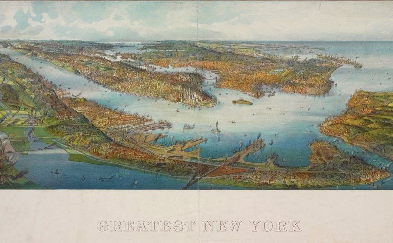 Henry Wellge: Greatest New York, 1911. Lionel Pincus and Princess Firyal Map Division, New York Public Library