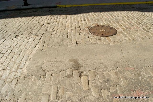 Our tour started with a walk along Water Street, the designated road the Greenway will be built out on in Dumbo.  Water Street is a good example of the challenges that the Iniatitive has encountered on this long planning process.  The roads of Dumbo are made out of historical belgium blocks, and the subsurface utilities are quite old.  In order to accommodate bikes and support green infrastructure a lot of work has to be done, while getting support from local residents.