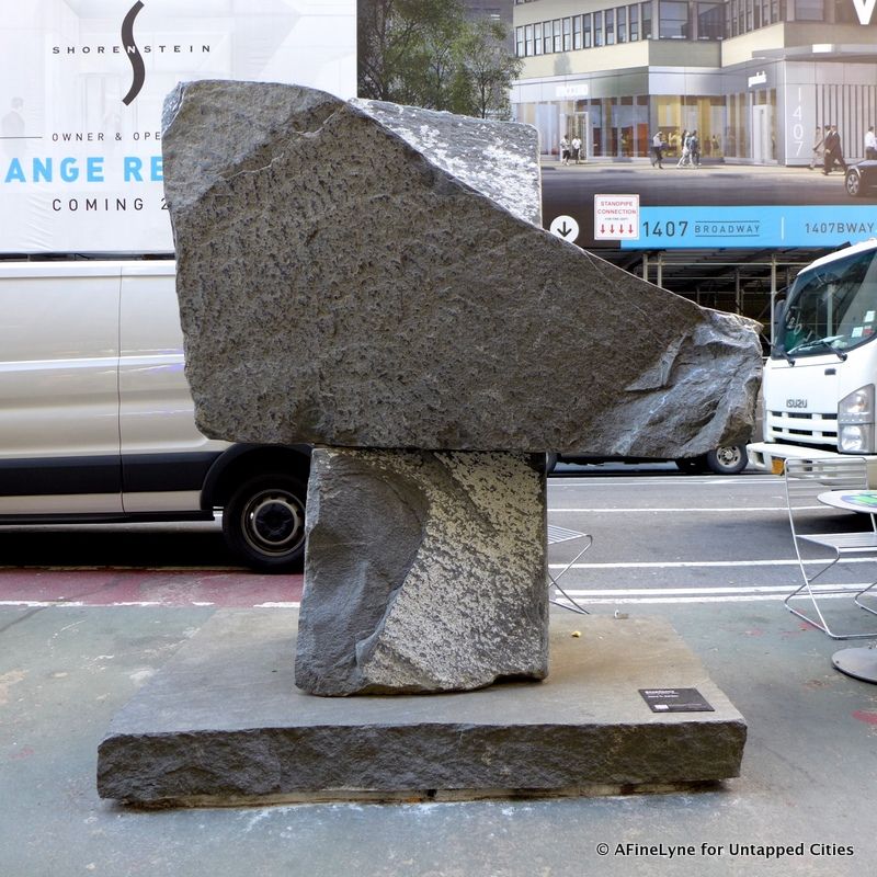 Enki, 2007, black granite, 9′ x 10′ x 7.6′, located on Broadway between 37th and 36th Streets