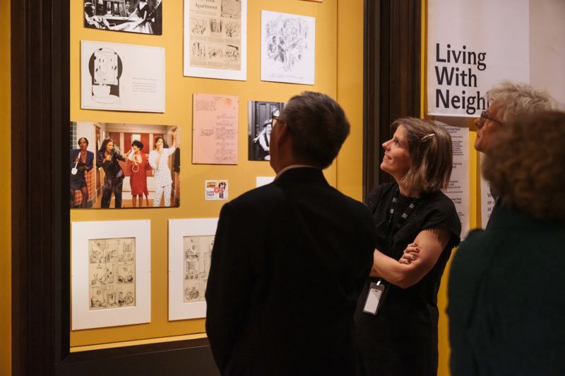 “At Home in New York” is dedicated to living spaces in New York City. It celebrates both their oddities and their upsides. This is where that talking bookshelf comes into play. The bookshelf illuminates scenes from NYC-centered TV shows like The Jeffersons, The Honeymooners, and Living Single. Excerpts of books that show New Yorkers at home are narrated by well-known voices of celebrities including Matthew Broderick, Rosario Dawson, and Tessa Thompson, key writers such as Qian Julie Wang, and WNYC’s Alison Stewart. In addition to the interactive talking bookshelf, “At Home in New York” also showcases various depictions of home in paintings, photographs, and manuscripts.