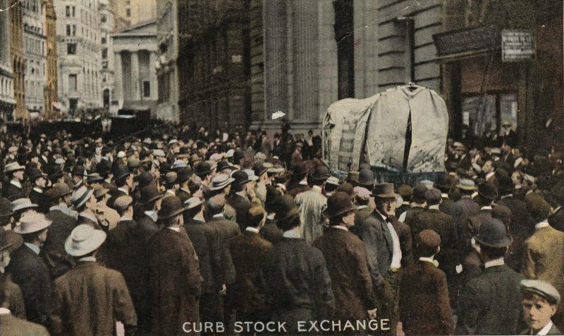 Ezra Meeker in Lower Manhattan on Broad Street. Image from New York Public Library.