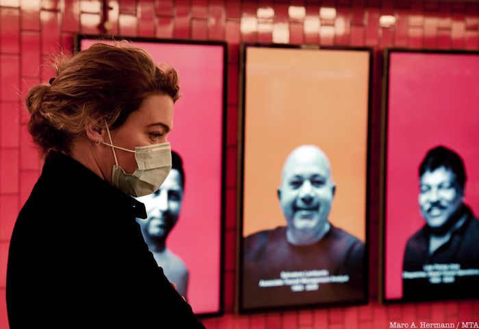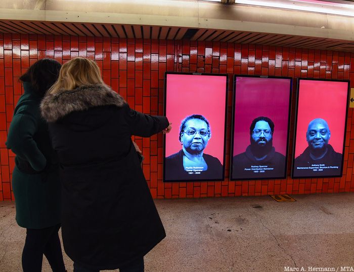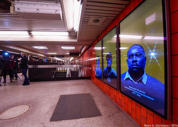 The installation was a special request to MTA Arts & Design by Sarah Feinberg, Interim President of MTA New York City Transit. She said yesterday “The pandemic has marked an unimaginably challenging and painful time at New York City Transit. Today marks the next step in our ongoing efforts to honor the colleagues, friends and family members who were taken from us too soon. These men and women were the heroes of the transit system – conductors, bus and train operators, cleaners – but they were also mothers, fathers, sisters, brothers, sons and daughters. We think of them daily and we continue to mourn them with their friends and families.”
