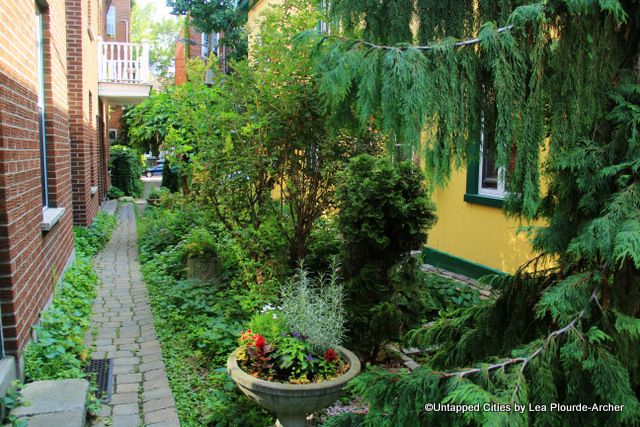 Montreal has more than 280 miles in alleyways hiding between the city’s tightly packed buildings. Prior to the creation of the Ruelles Vertes project, they were largely underused and served almost exclusively for local car circulation and for garbage disposal.