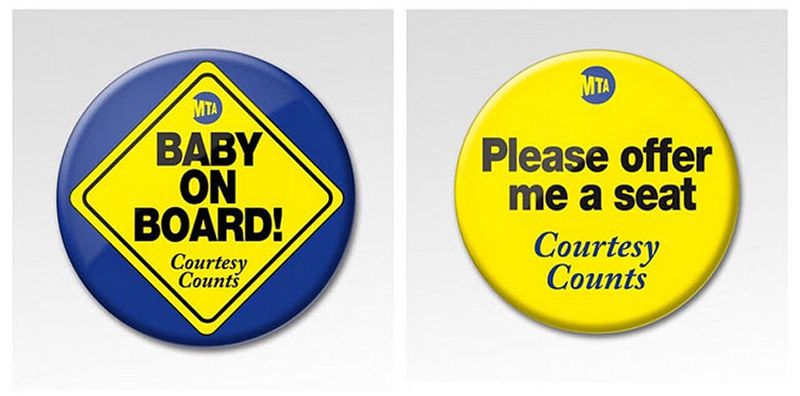 Following a popular initiative on the London Tube, the MTA has announced new buttons as part of a pilot for the Courtesy Counts campaign that can be worn by expecting mothers, disabled or seniors. The two buttons read “Baby on Board” and “Please offer me a seat.” Appropriately launched on Mother’s Day, this pilot program will run until Labor Day. The buttons, which are free, can be ordered online, and will be delivered within 2-3 weeks.