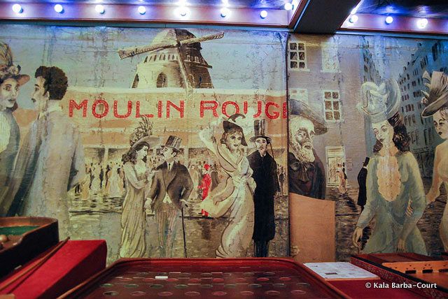 Installed in three dreamy rooms (La Fête Foraine, Le Théatre du Merveilleux and the Salons Vénitiens) are Belle Epoque carousels, game tables from the 1900s, Folie Bergère costumes, Japanese billiard tables, hundred-year-old bicycles, and every possible funfair attraction you could think of. Adults and children alike lined up for a ride on the Velocipéde, a bicycle carousel, pedaling furiously and smiling widely at the flashing cameras of their companions standing on the sidelines, and others whiled away their time playing toss-ring games. Children dashed like mad from room to room, fueled by the carnival atmosphere or the amount of cotton candy they’d consumed (or maybe both – I find that most French children have a low tolerance for sugar, since they don’t get sweets very often).
