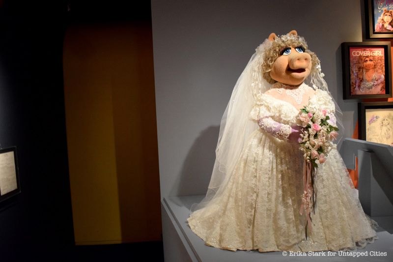 The exhibition features both a chance to view the original versions of some of Henson’s most beloved creations (Miss Piggy in her Wedding gown, and an 8-foot-2 Big Bird, and the creatures of Fraggle Rock just to name a few) as well as the original sketches for many of Henson’s designs, the costuming from his films and a series of moving image displays along with short video clips as well. Altogether, the exhibition features over 300 artifacts of Henson’s in these various styles (puppetry, animation and 2D art), which were all chosen from a pool of 500 artifacts donated to the museum by Henson’s family in 2013.