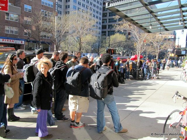 Had we spent almost an hour waiting for Michelle Obama? I had seen a man exit the door carrying two handheld metal detectors, a woman who came out to join the crowd stated that she had witnessed Secret Service agents inside, a ConEdison employee confirmed the presence of the Secret Service and displayed a pin that he had received from one of them earlier in the day, and I saw a man come out of the doors wearing an earpiece and sporting the same secret service pin that we been shown by the ConEdison employee.