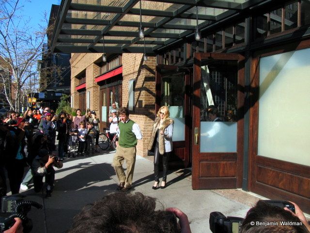 By now other people were congregating on the sidewalk as well. Whenever someone walked in front of the paparazzi they tested their cameras in order to make sure that when the time came, their camera settings would be correct. One person said that the door led to a hotel, another said a restaurant. The former was correct–the door actually led to Robert DeNiro’s Greenwich Hotel. A camaraderie began forming amongst us non-paparazzi standing on the sidewalk. We were fascinated by the cultural phenomenon that created a need for a dozen professional photographers to photograph an actress every time she exits a building. Around four o’clock, things started getting exciting. A rumor began spreading that it was actually Michelle Obama and not January Jones for whom the paparazzi were waiting. Having never seen Mad Men before, this rumor provided me with a greater incentive to stay. But was it true? The paparazzi denied this rumor. However, we rationalized their denial by asserting that the paparazzi wanted us to think it was January Jones so we would leave thus providing them with more space to capture Michelle Obama walking through those doors.