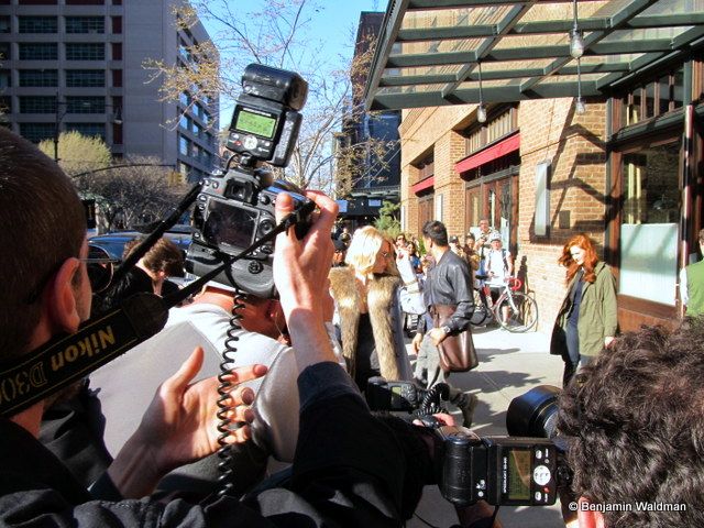 I asked one of the photographers what they were waiting for and was told that January Jones, who plays Betty Draper on Mad Men, was inside and would be coming out shortly. This occurred around 3:50 in the afternoon. As the time passed, the paparazzi’s presence outside this door increased. Each time the door opened, the paparazzi started snapping away. However, time and time again, those exiting the door turned out not to be the paparazzi’s intended target. This cycle of excitement and disappointed continued on a regular basis.