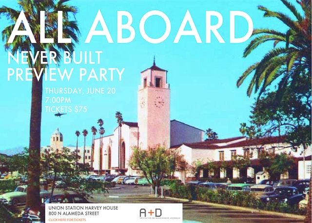 The curators of “Never Built: Los Angeles” invite you to celebrate the opening of their new exhibit at the Downtown LA Preview Party, held at the extroardinary Union Station Harvey House on Thursday, June 20th, at 7 p.m. Purchase tickets for the Preview Party here.