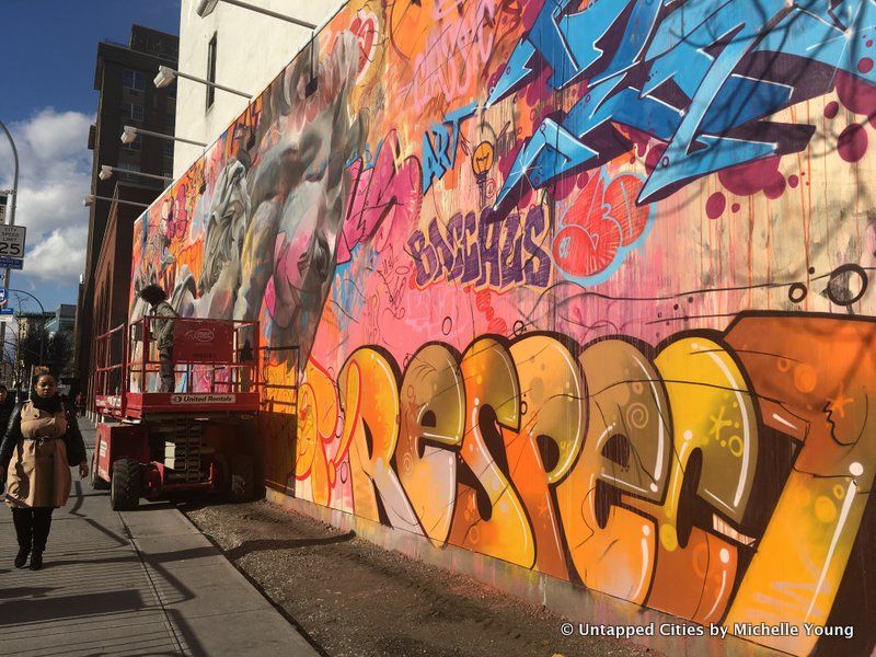 The Bowery Mural is an initiative by developer Tony Goldman in partnership with Jeffrey Deitch and Deitch Projects which launched in 2008. This work by Pichi&Avo is expected to be completed by February 4th.