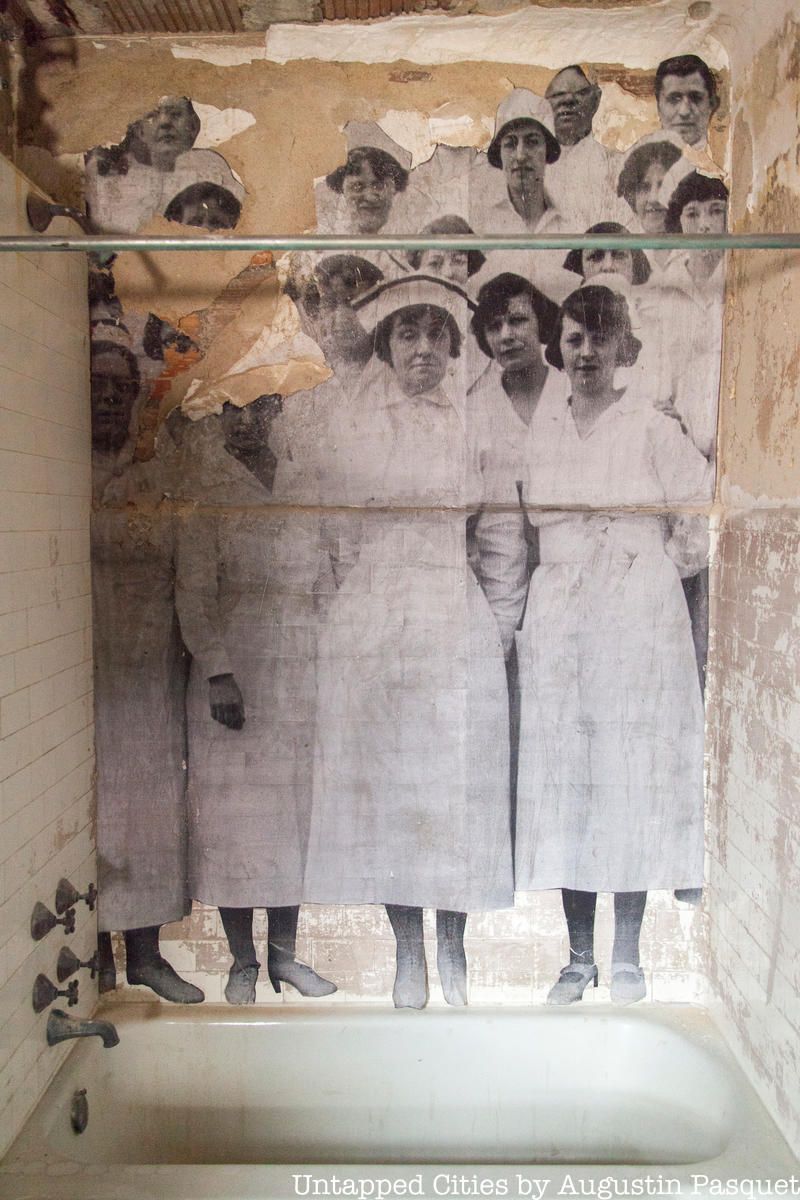 On this new tour that focuses on the work of this installation, guests will have the opportunity to see all 26 works that are currently installed in the hospital. This includes exclusive access to places not open on any other public tour, including numerous different locations not offered on our hard hat tour of the abandoned hospital complex on Ellis Island or any other public tour. Join us in tracking downing JR’s beautifully haunting images while discovering the second floor of the complex and peeking inside what’s known as the “Blue Room,” among other places.