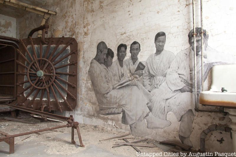 How this tour differs from our Hard Hat Tour of the Abandoned Hospitals: The JR Tour is longer than the Hard Hat tour and the history of the Ellis Island hospitals is told through the lens of each artwork, led by an expert on the JR installations. You will access numerous additional spaces not available on the Hard Hat Tour, or any other public tour of the abandoned hospitals and receive a 24″ x 35″ framable poster of JR’s artwork. This tour is exclusively offered by Untapped Cities on select dates.