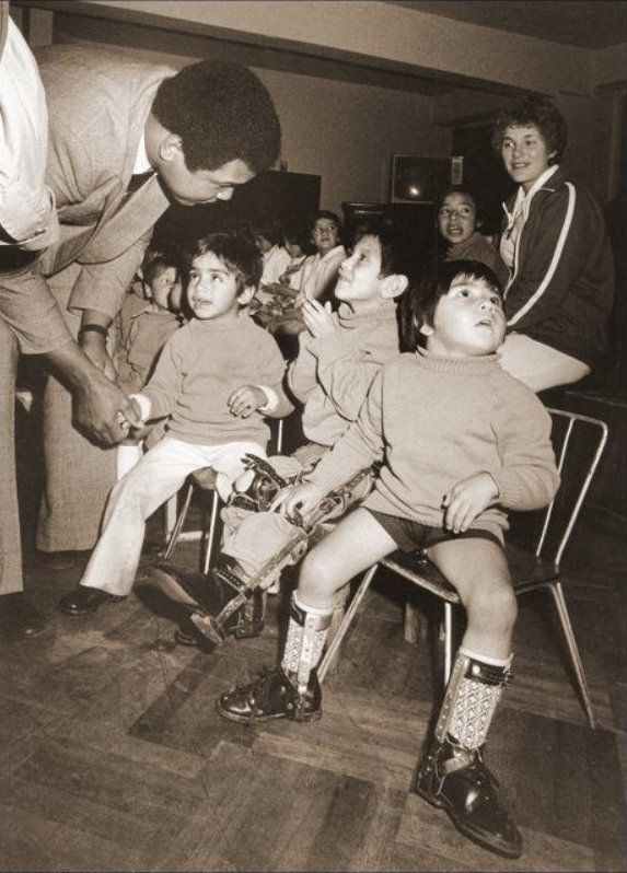 A few photographs show Ali in a polio hospital in Bogota, Colombia, where he visited every single child. Gaffney says that Ali “was ecumenical, before ‘ecumenical’ was even a catchphrase. But he loved everybody and really that explains why every body loved him. It was reciprocal with Ali. Ali put himself out there, stood up for purposes, stood up for all the right reasons to make cultural and social and equality of all races, all religions…he stood up for the principles, the values his whole life. And where did that come from? A lot of it was from his spiritual background. He’s a devout Muslim and he used to study the Quran all the time when I was with him, especially on planes. Believe it or not, he flew a million miles a year but he was scared to death to fly. He used to read his Quran to calm himself down. He prayed five times a day. To me, it was a revelation, discovering what the personal Ali was really like. He was quiet when the spotlight wasn’t on. But when the spotlight was on, this guy was dynamic.”