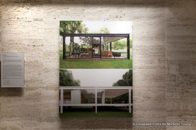 The two architects had met at the Bauhaus and both buildings were designed at just about the same time. One of the most striking photographic comparisons in the exhibit, with the Glass House emerging from an early morning fog, captures the fundamental difference, as articulated by Philip Johnson himself in Philip Johnson: The Architect in His is Own Words
