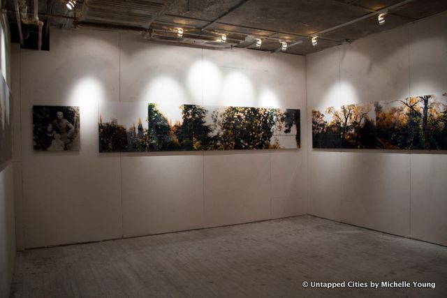 The lower level, technically the first level of the hospital, has the feeling of a basement. The rooms are former cells that held psychologically disturbed patients. One of these rooms, “Anonymous” explorers rape as a war crime, showing the portrait of a woman, wed as a teen war bride during World War II, who committed suicide later. It’s a timely topic, given that the documentary The Uncondemned about the first prosecution of rape as a war crime, premieres in October at the Hamptons Film Festival.