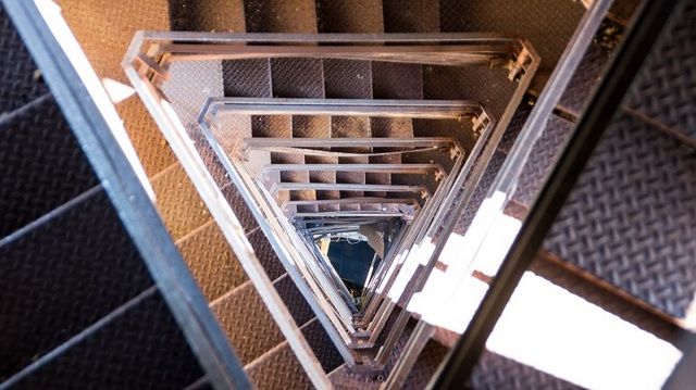 Looking down through the elevator shaft into the Tent of Tomorrow
