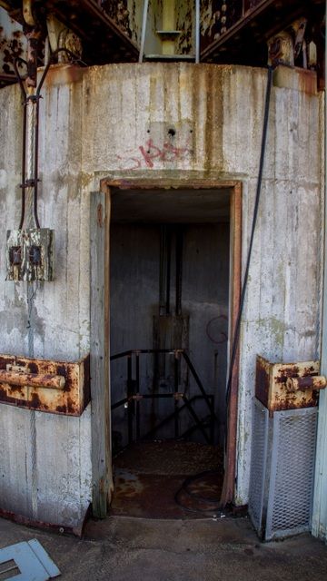 Looking out of one of the slits/openings in the tower. (Note the lights on the top of each pillar that were never taken downfrom the fair)