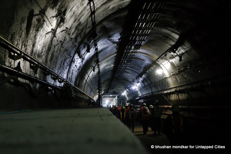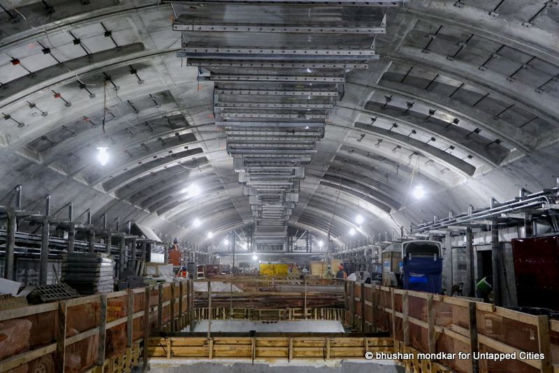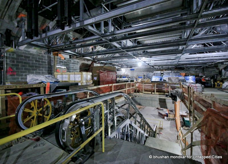 The massive tunnel slopes from the street level to the mezzanine level and will house three escalators